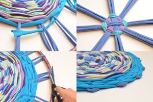 Ако сте изчерпали колана си, не е нужно да го изхвърляте. Когато се натрупат достатъчно, около 10-12 парчета, можете да си направите килим за ръце в стила на ар нуво.