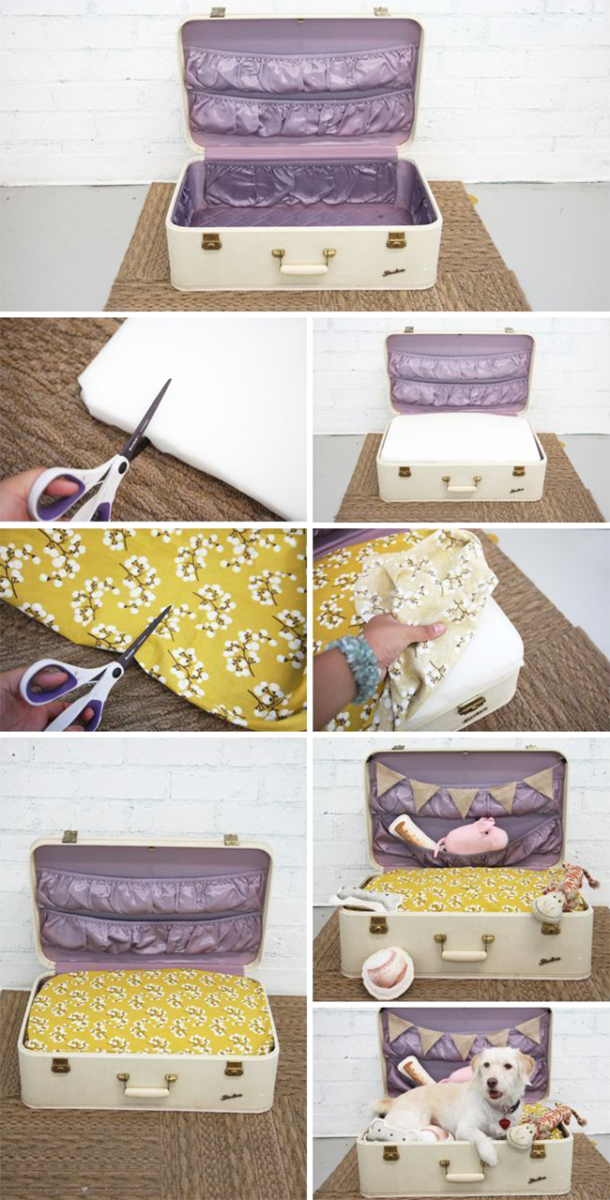 За да си направите легло, ви е необходима само половината куфар без капака: