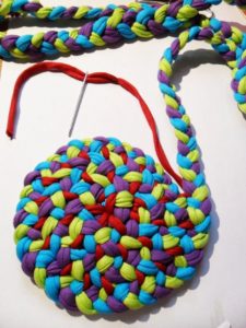 - Започнете да усуквате готовата плитка от центъра на кръга и добавяйте още халки.