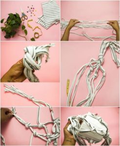 - Направете една дълга плитка от тези ленти, като я закрепвате с конец на всеки 15 см.