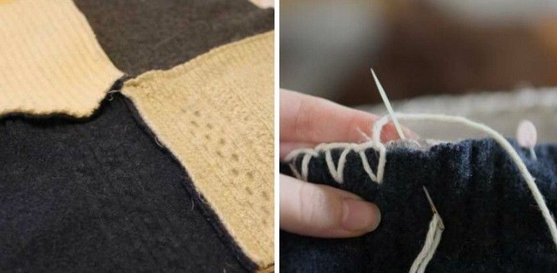 - Сгънете четирите парчета така, че плетените да са вътре, и ги зашийте.