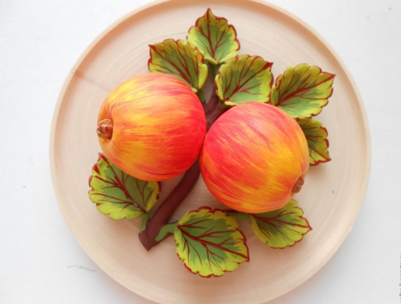 Пълните ябълки могат да се приготвят, като фолиото се намачка на топчета и се покрие с брашно. Това обещава лесни и бързо съхнещи фигури от тесто. Остава само да ги боядисате в естествен тон, като забиете в тях стръкче клонка.
