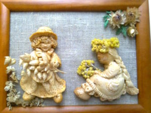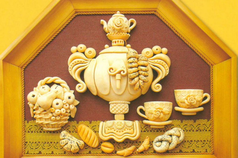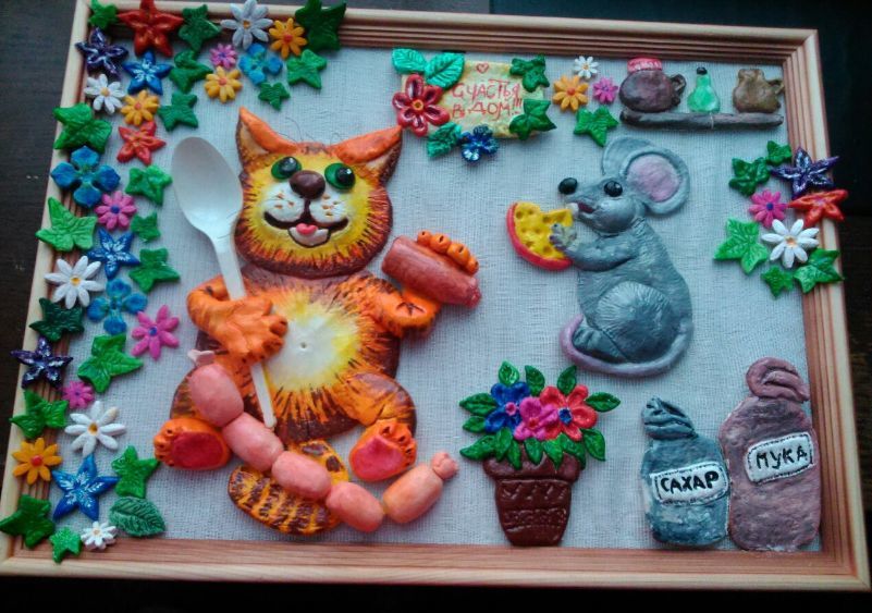 Такива теми веднага привличат погледа и разкрасяват заобикалящата ви среда. Флоралните композиции ще преобразят залата, кухнята - кулинарни образи, а детските - анимационни герои, рибки, малки животни. Картините от тесто са пейзажи, натюрморти и растения. Силуетите се пресъздават върху пергаментова хартия, пълнят се със суровини и след като изсъхнат, се залепват върху картонена основа. Използването на множество слоеве гарантира, че картината е изпъкнала.