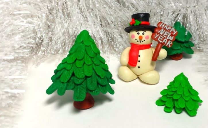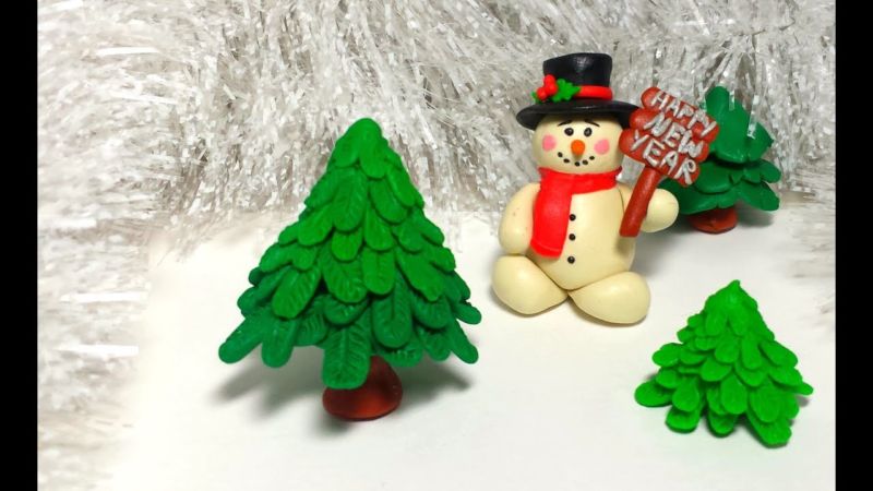 Оформете зеления материал на колбаси и го нарежете на парчета, след което го оформете на топчета. Техният брой се избира самостоятелно. Частите са залепени една за друга, като главата е повдигната с очи и нос. Образецът трябва да бъде предварително прободен за окачване.