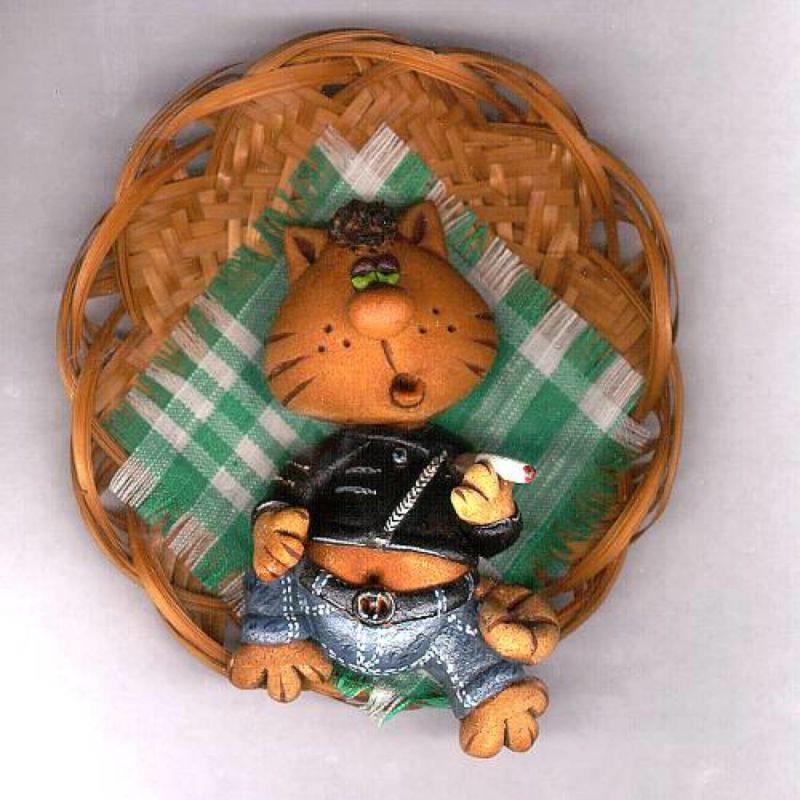 Птицата може да бъде прикрепена към дъска или поставена на клон, а последният щрих са масивните лапи. Образът може да бъде променен, като се измислят забавни детайли.