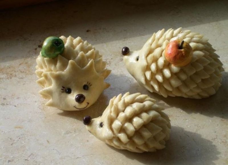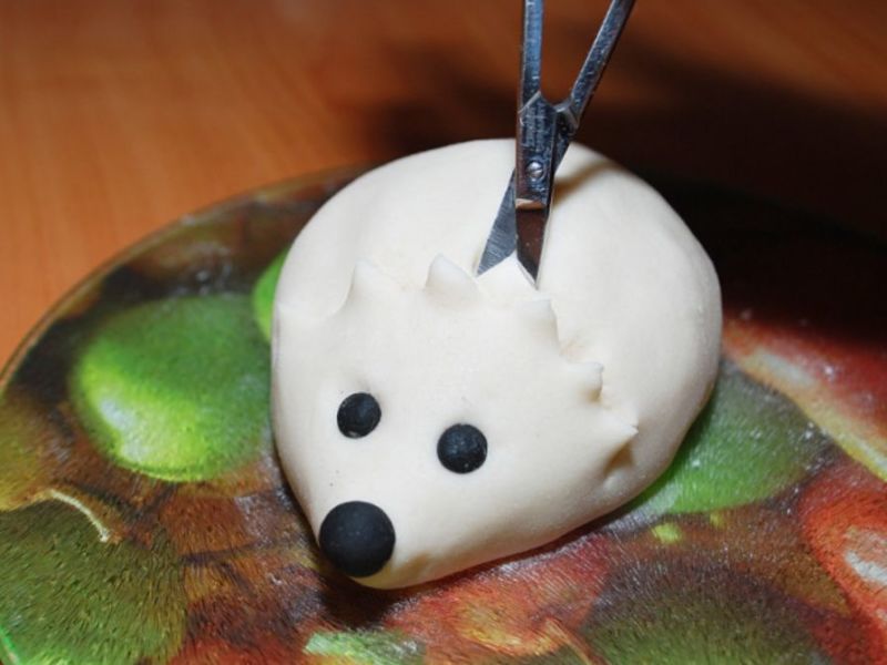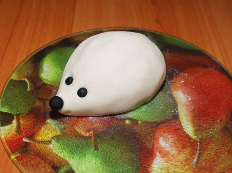 Направете тялото на таралежа, което има капковидна форма, подчертайте носа и очите, като използвате парчета черно тесто, мъниста или грах.