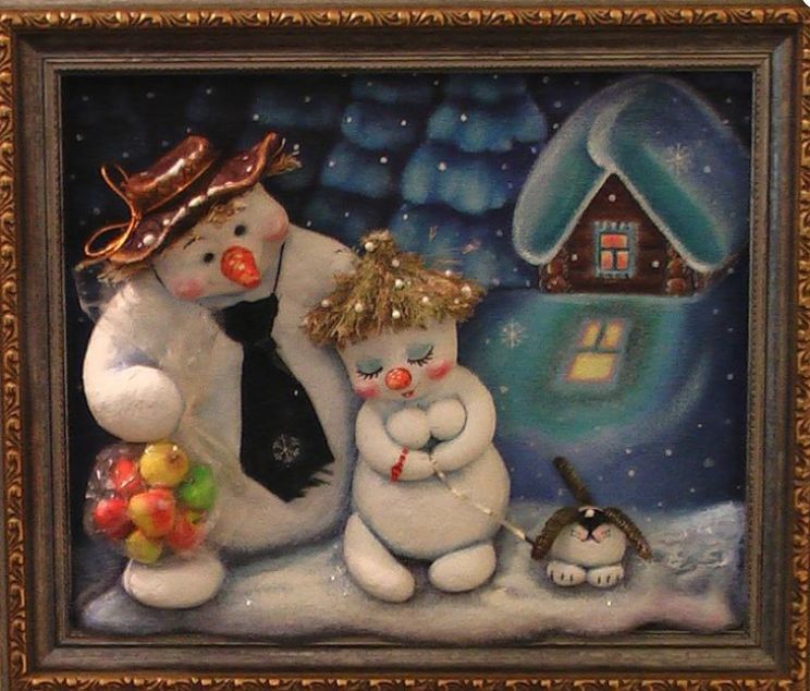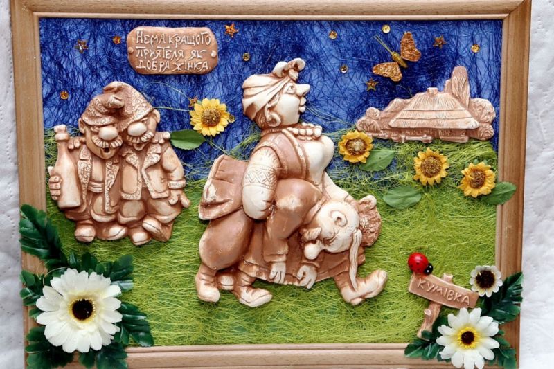 Не е трудно да се изобразят зимна гора, кошница със зеленчуци, котка, гроздове, слънчогледи, символ на благополучие. Корпусът винаги е на преден план, а фонът е нарисуван.