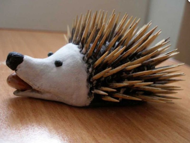 Често иглите са представени с мачове или шишове, на които са нанизани гъби или плодове. Полученото създание е много симпатично и реалистично.