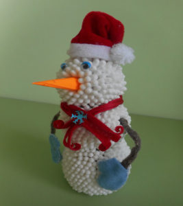 За да създадете ръкоделие със зимна или новогодишна тематика, е логично да направите снежен човек. Този символ от сняг ще пресъздаде зимна атмосфера.