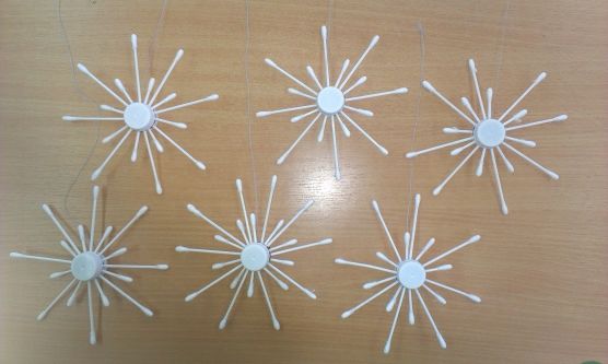 Снежинки от памучни пръчици