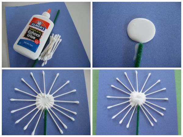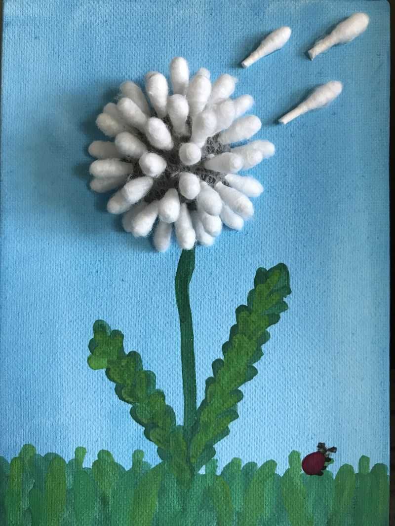 Създаването на глухарче е занаят, направен от памучни дискове и памучни пъпки.