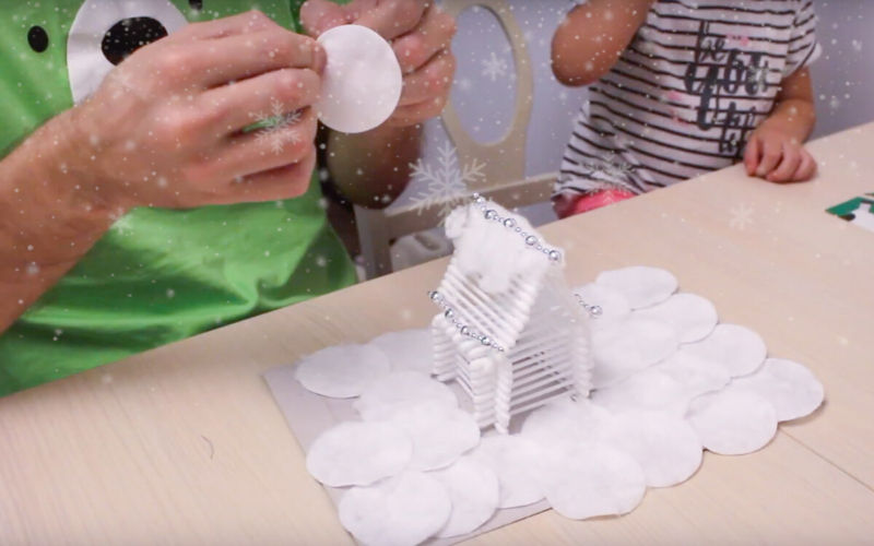 За да представите зимата, трябва да добавите памучна вата на покрива. От него се образува облак.
