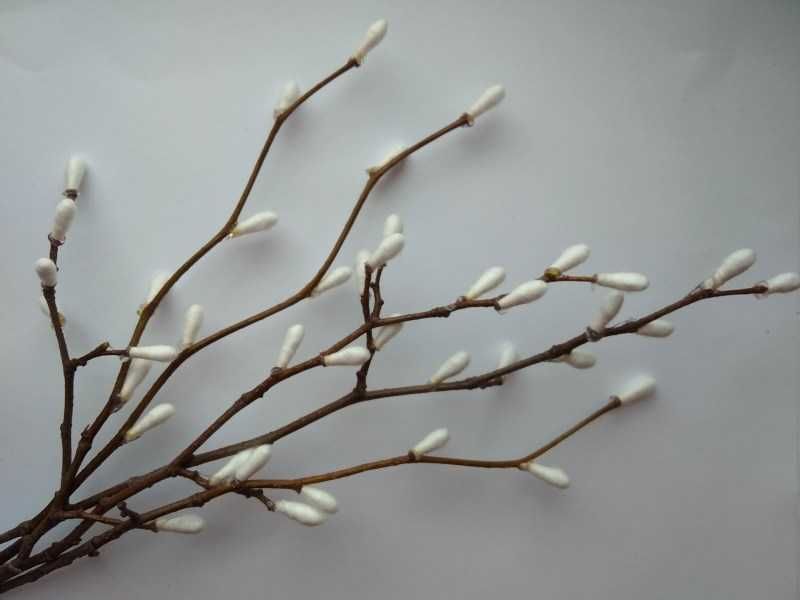 За Великден можете да направите ръчно изработено върбово дърво от памучни пъпки. Върбата ще бъде флорална тел. Трябва ви малко парче от по-тъмен цвят. Върхът на памучната пръчица е прикрепен към накрайника. Това е единствената част, която ще бъде полезна за занаята, така че трябва да направите много.