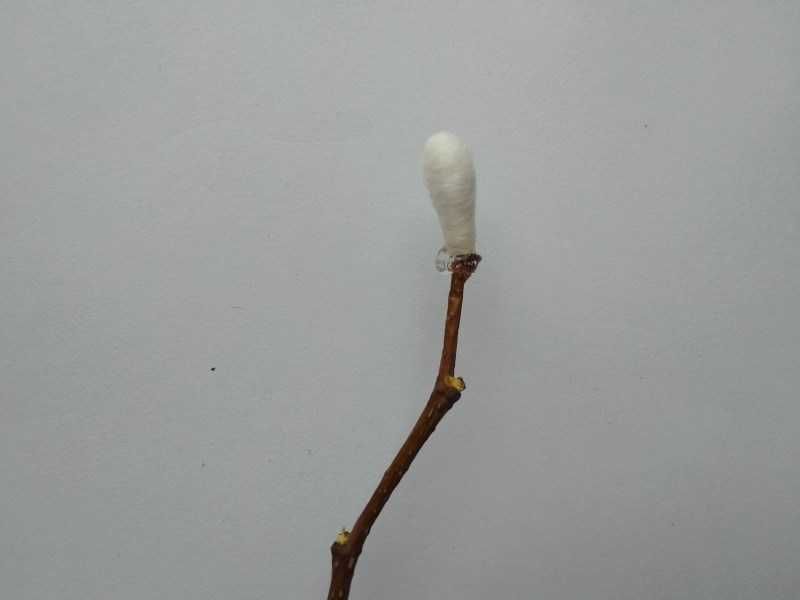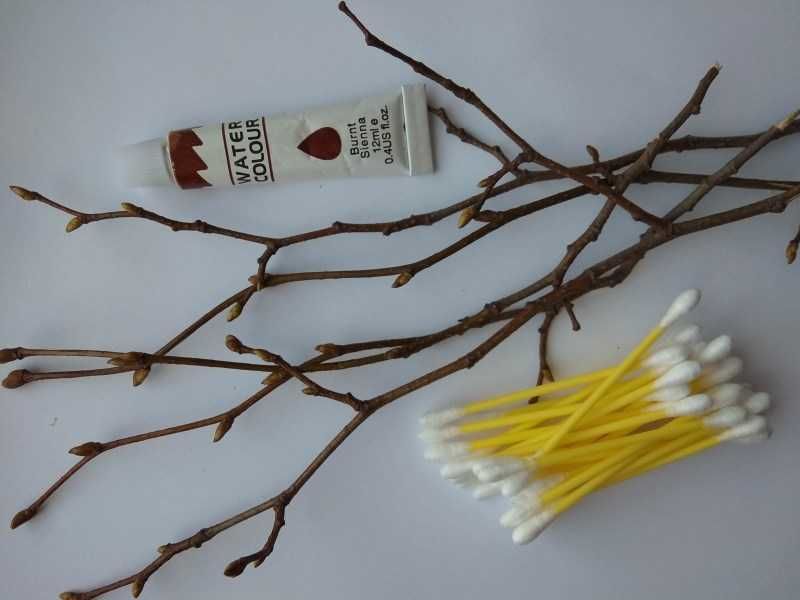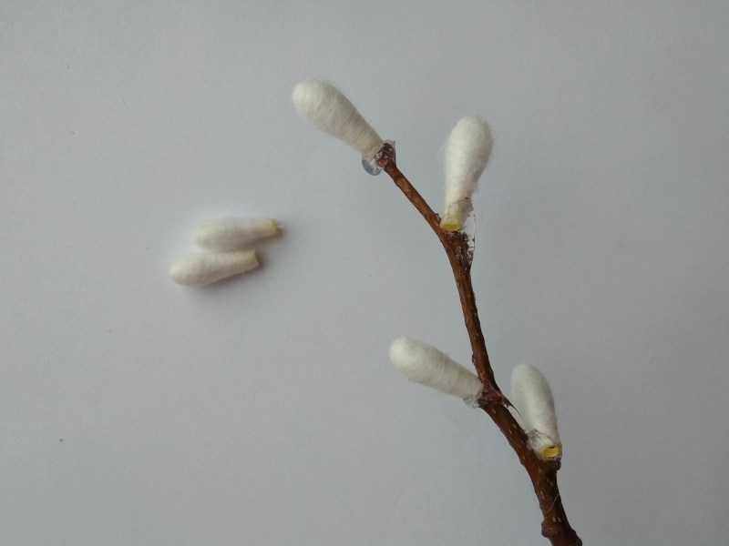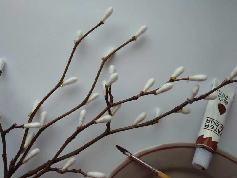 За да направите върбовите клонки, трябва да нанесете меко парче памук от двете страни на кафявите ленти. Не го правете твърде често, защото в противен случай няма да изглежда естествено.