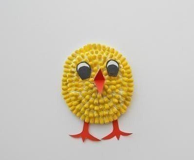 - Изработването на лапички за пиленце е много лесно. За целта е необходима хартия с червен цвят. Вземете малко парче. И ги обелете наполовина. Нарисувайте един крак и го изрежете. В крайна сметка имате две. Те са залепени в долната част на корпуса.
