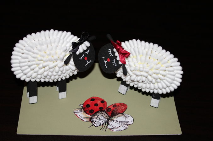 - На челото на овцата се залепва парче памучна вата заедно с върховете на клечките за хранене.
