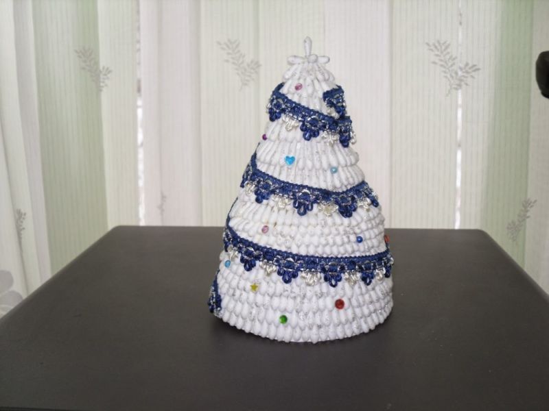 Трябва да се залепи с помощта на пистолет за лепене. Отстрани са прикрепени бели заготовки. След като цялата клонка е запълнена, отрежете с ножица излишните парчета лепило.