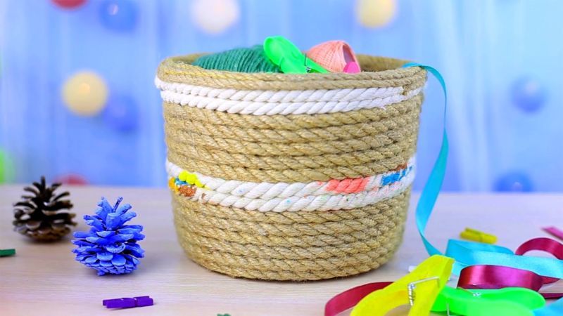 Използването на въже за украса на неща, които срещаме постоянно, е добра идея, за да им придадем оригиналност и уникалност. По този начин можете да смените саксия за цветя, ваза, поднос, органайзер, драскалка, леха за цветя и други предмети.
