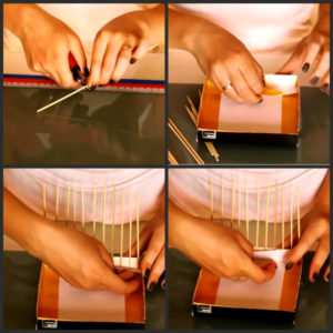 - Внимателно залепете слоевете към основата, като поставите всяка нишка плътно една до друга.