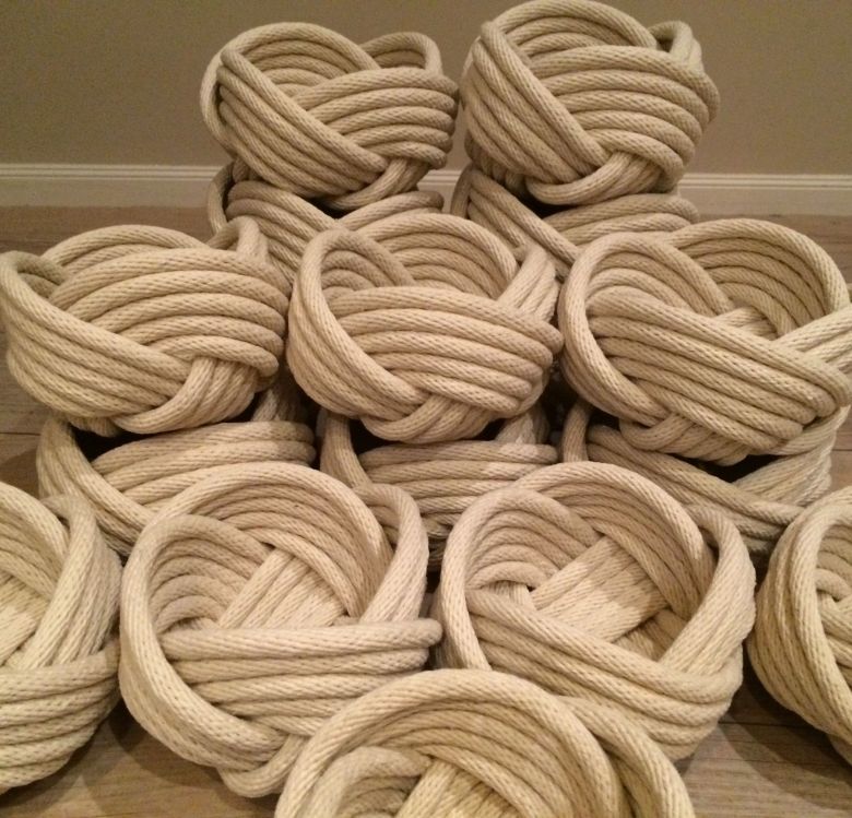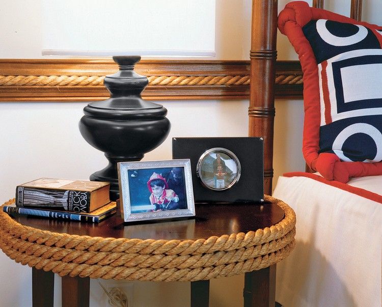 Въжетата могат да се използват и за декорация на мебели. Вплитането на възли и канап в краката на мебелите е възможно в няколко случая: