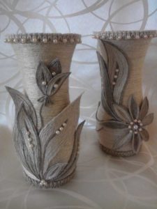 Декорацията на такива вази е интересна, покажете въображението и креативността си и създайте уникален шедьовър, който спокойно можете да представите на гостите у дома.