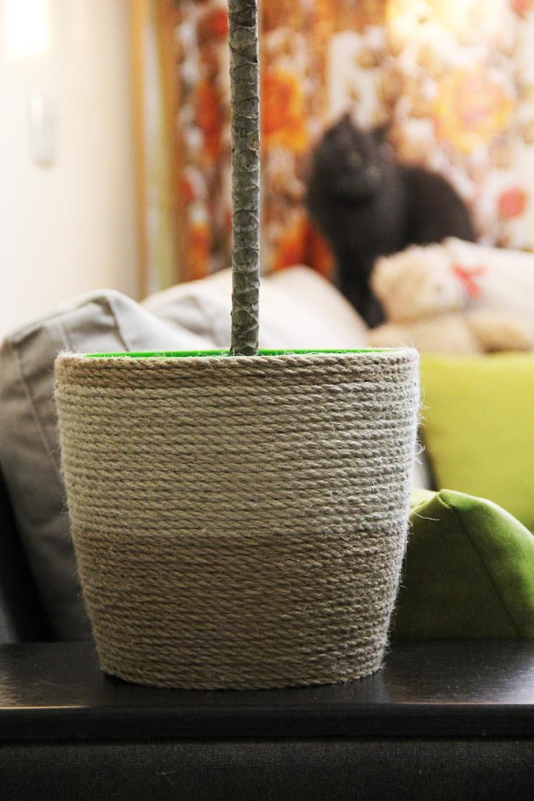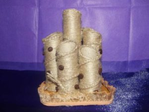 - Постът за драскане се състои от основа и шина. Към основата е прикрепена дървена греда и към нея е залепено въже. Основата може да бъде покрита с килим или плат, който да съответства на цвета на помещението.