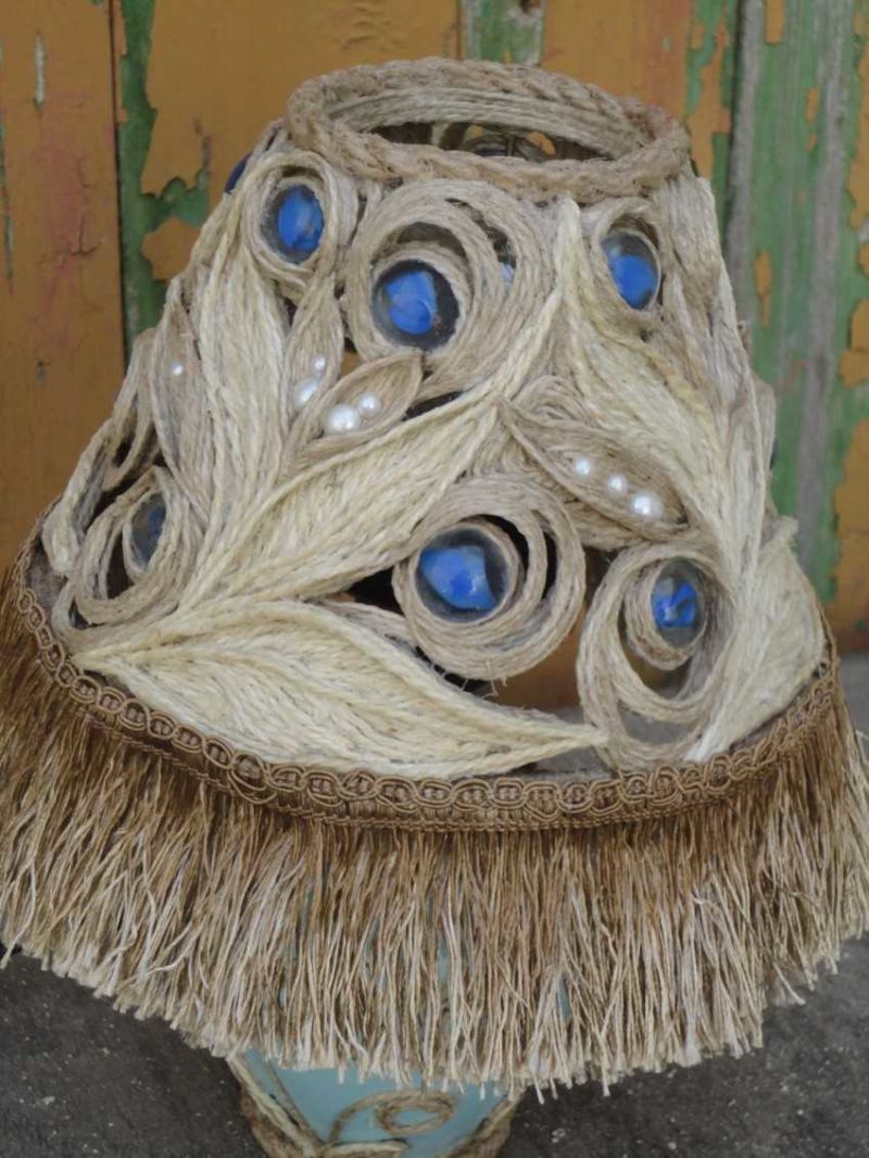 За декорацията на градинска къща, пергола, абажур, изработен от въже със собствените ви ръце, ще изглежда интересно и оригинално. За изплитането ще са ви необходими два пръстена, които да служат за основа на абажура, и въже: