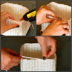 Намажете външните стени на саксията с лепило и внимателно притиснете всяко намотано въженце. Саксията може да бъде боядисана с акрил, за да съответства на цвета на помещението, или лакирана за по-голяма здравина.