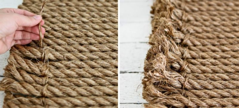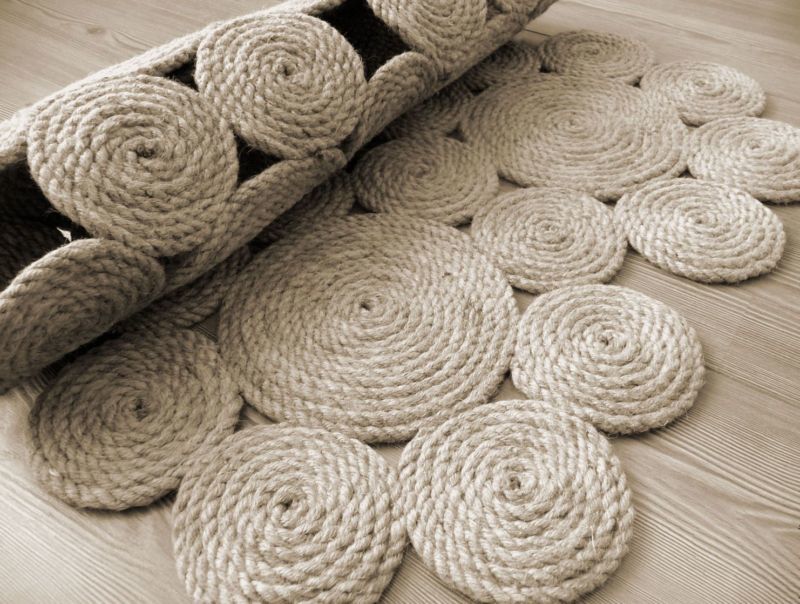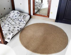 - Изберете преждата, от която да направите килима си: юта или памучно въже. Естествените материали ще осигурят комфорт на краката ви. Ако планирате да направите килим за коридора си, препоръчваме ви да използвате синтетични влакна, тъй като те се перат добре и са по-издръжливи.