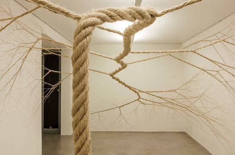 Свободното пространство на стената може успешно да се разнообрази с помощта на колани или въжета. Необходимите ви елементи включват