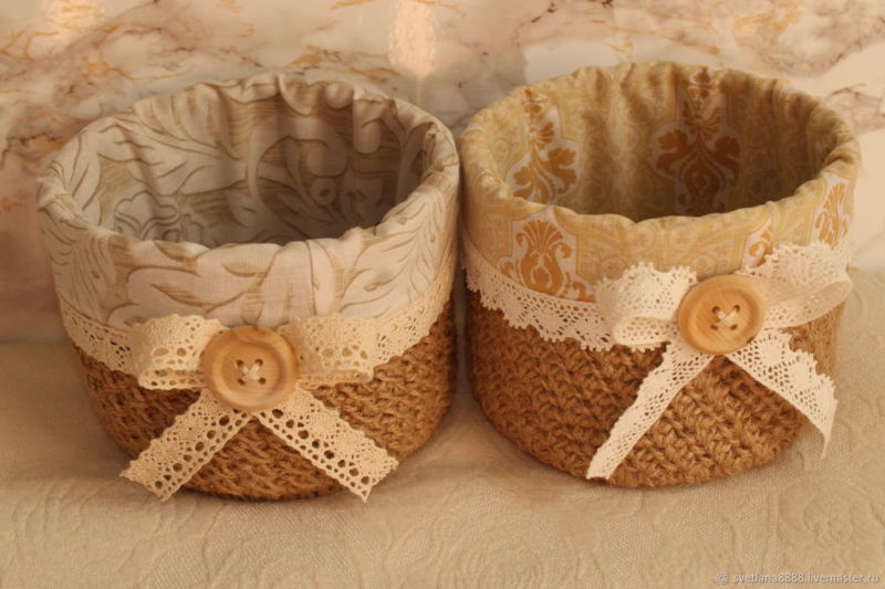 За по-лесно съхранение на различни дребни предмети се опитайте да си направите органайзер от канап. Удобството на тези занаяти е, че можете да моделирате броя и размера на отделенията на организатора. В него можете да съхранявате градински инструменти, части за гараж, канцеларски материали, занаятчийски изделия и други неща.