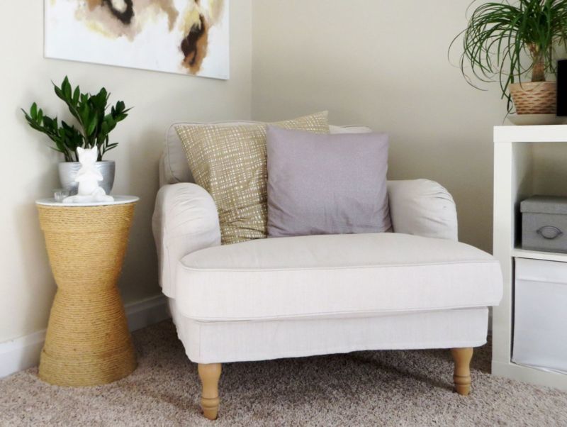 За да създадете светло място в интериора, можете да си поиграете с цветовата гама или да я боядисате в края на работата в желания от вас цвят. Краката на тези мебели могат да се използват от домашния любимец като място за драскане.