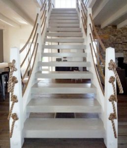 Възможно е въжето да се използва като парапет за стълбите, като се ограничат пролуките му чрез възли на определено разстояние.