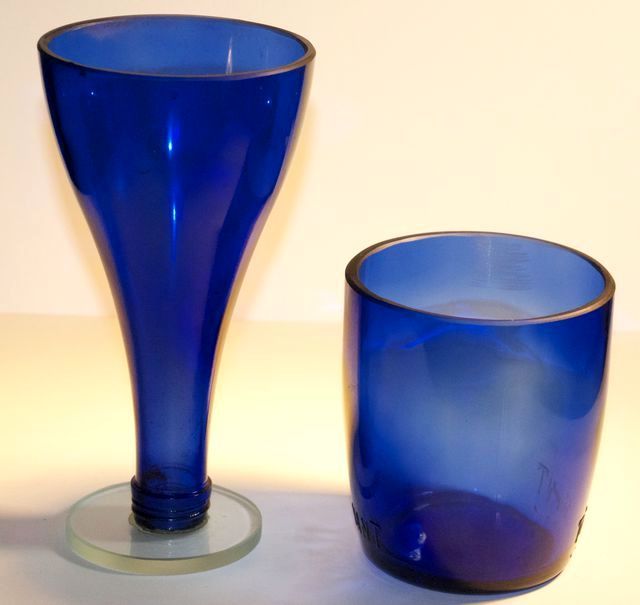 - Отпилете гърлата на бутилките (които могат да бъдат с различна височина) и шлифовайте ръбовете.