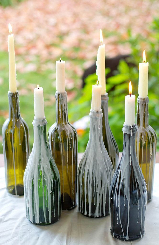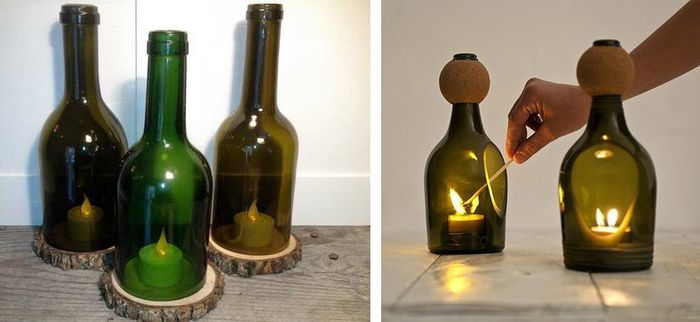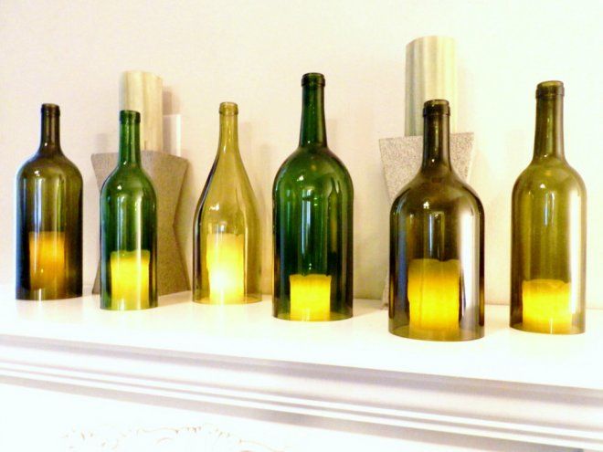Лесно е да си направите сами забавен стъклен свещник. Трябва само да отрежете бутилката до желаната височина и да я напълните с восък и фитил. Или, по-просто, поставете малка свещ в бутилката и украсете контейнера. Има два начина за изрязване на заготовката.