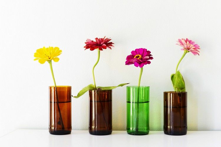Самите стъклени бутилки вече са аналог на вазите. С малко въображение бутилката може лесно да се превърне в оригинална ваза за цветя.