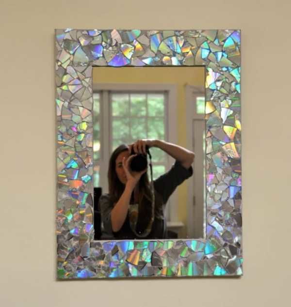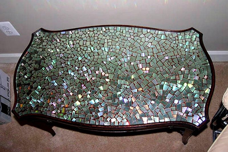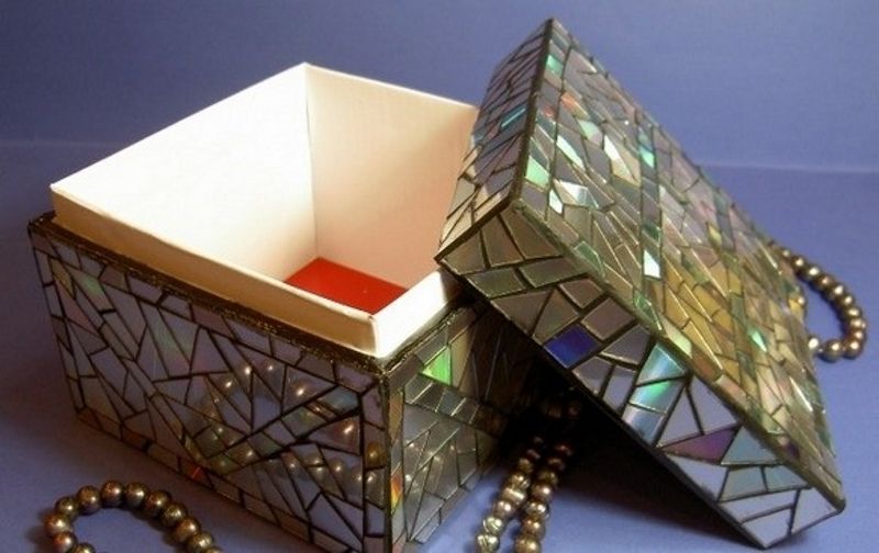 Във вилата често се намират стари, но все още солидни мебели. CD могат да се използват за обновяването му. Зацапаните участъци и отделни части могат лесно да бъдат украсени с бижута, изрязани от компактдискове. И обектът ще изглежда по съвсем различен начин. Могат да бъдат създадени и някои хубави дрънкулки.