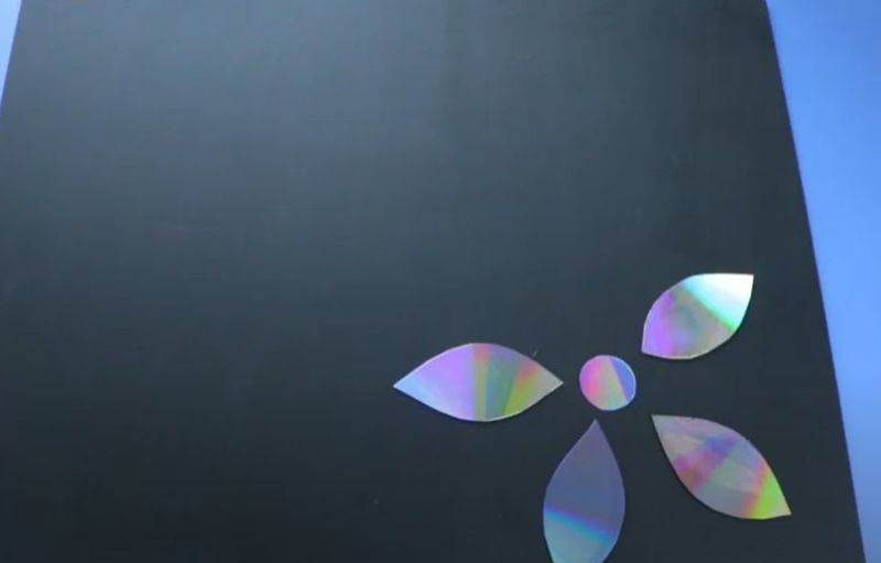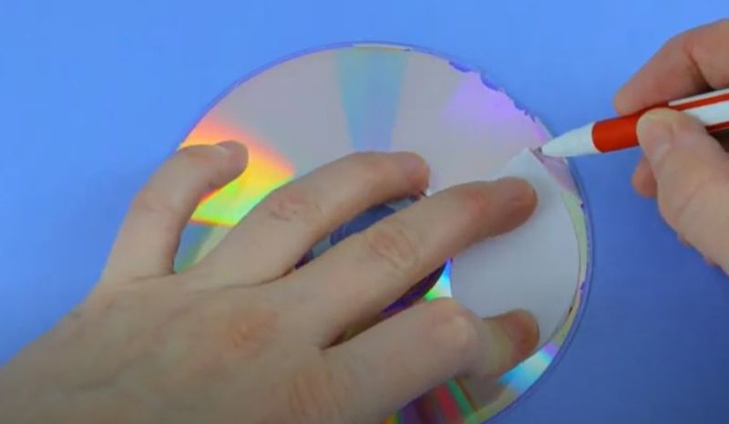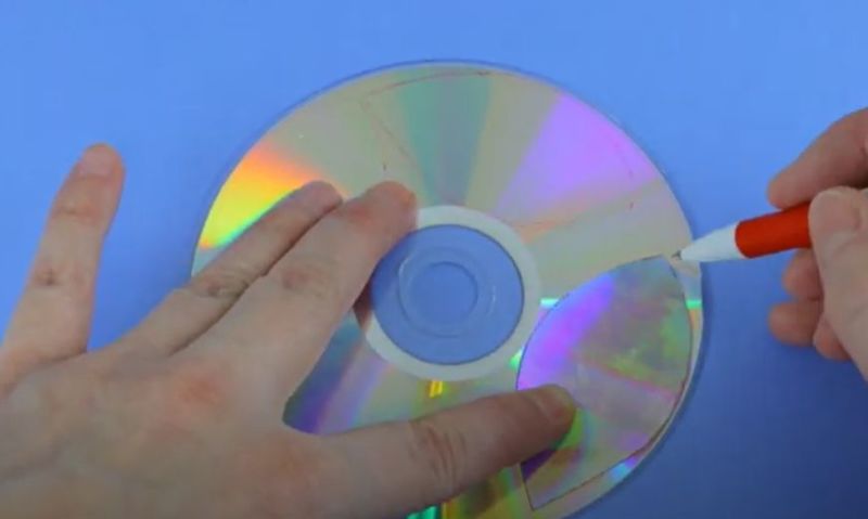 - От дисковете изрежете необходимия брой парчета с определена форма. Те могат да бъдат триъгълници, кръгове, издължени трапецовидни фигури или звезди, капки и други подобни.