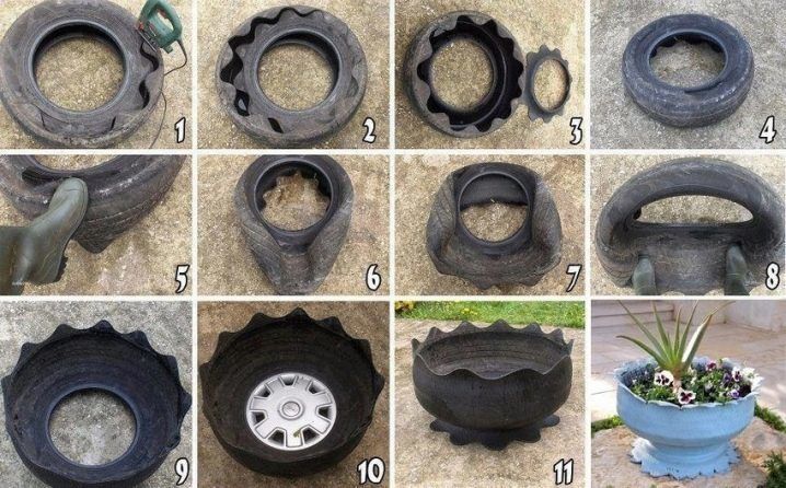 По-опитните занаятчии могат да създават вази с оригинални форми. В този случай гумите се нарязват и изкривяват.