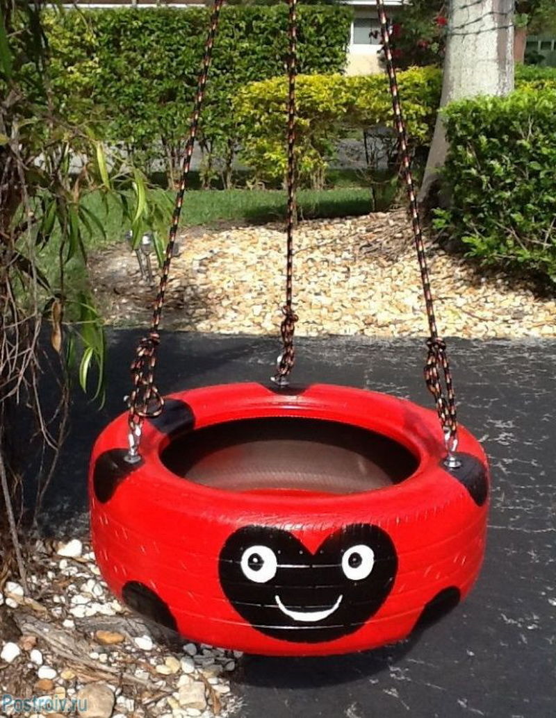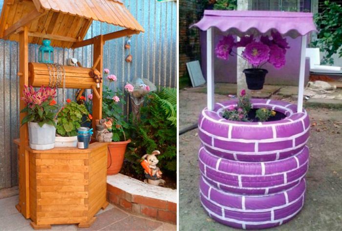 В допълнение към необходимите неща, обектът може да бъде украсен с декоративни елементи, изработени от гуми. Например създайте кладенец, като подредите няколко гуми една върху друга.