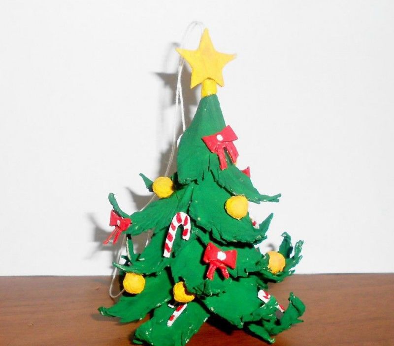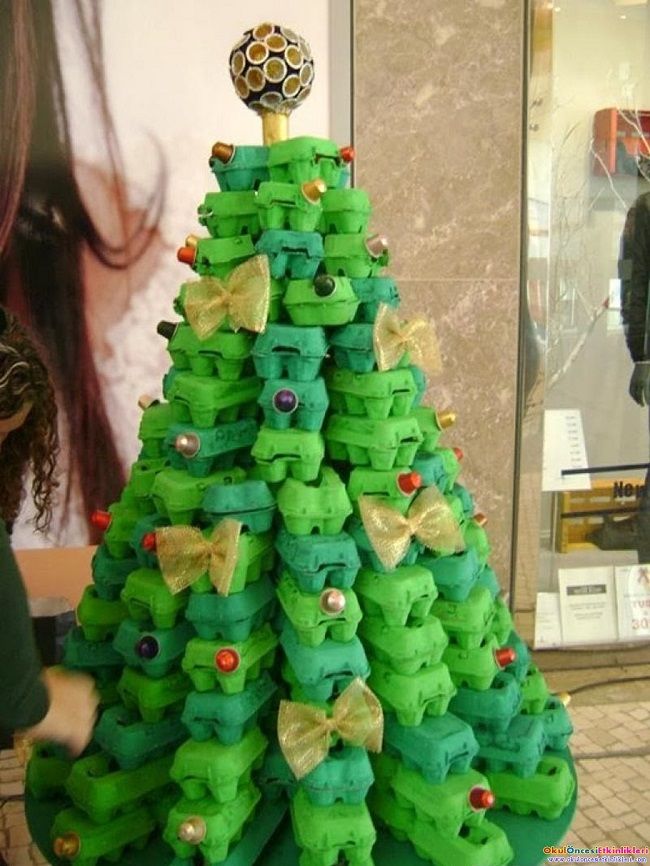 Изработването на коледна елха от подложки за яйца е много лесно.
