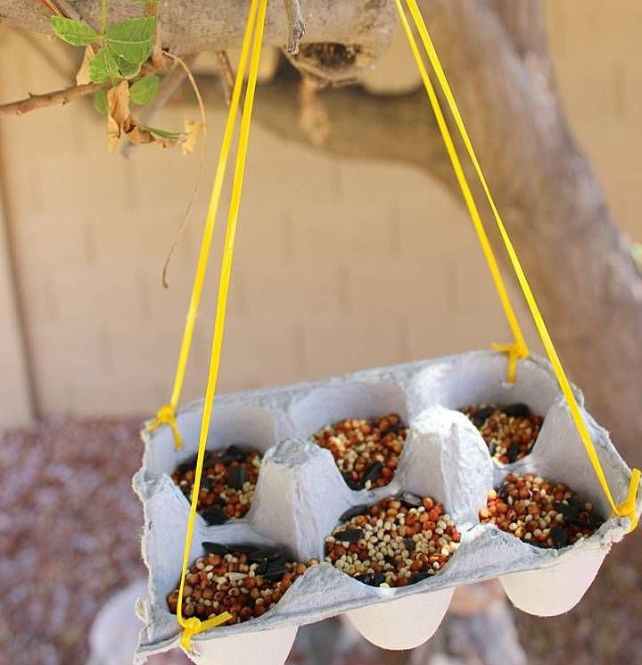 Предметите, изработени от картонени опаковки за яйца, могат да бъдат не само красиви, но и полезни. Просто вземете всяка картонена кутия за яйца, независимо от какъв материал е, направете дупки в ъглите и прокарайте връвчицата там. Не забравяйте да закачите коритото за яйца заедно с детето си, за да го насърчите да участва в опазването на природата.