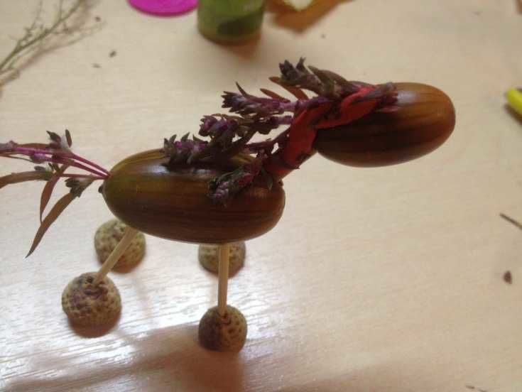 - Направете и прикрепете към торса издължено лице на животно. Свободен полет на фантазията: очи, цвят на носа, дори усмивка.
