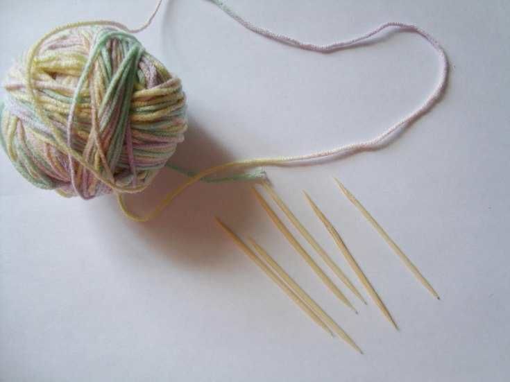- Продължете нишката до върха, като оставите малките краища на клечките за зъби. Залепете конеца и го отрежете.