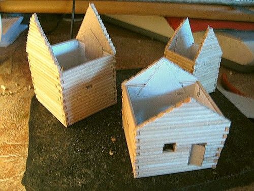 - Предварително боядисайте материала, предназначен за изработката на прозорците, вратите, покрива или пода (в зависимост от това дали възнамерявате да подчертаете някои части на бъдещата къща с цвят). Това трябва да се направи предварително, за да има време всичко да изсъхне.