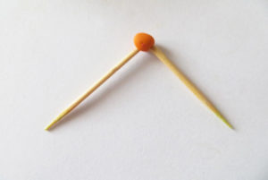- Вземете 4 клечки за зъби и направете от тях щайга, която да наподобява дъска за тик-так.