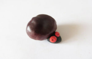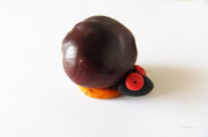 - Когато стане по-гъвкаво, оформете средна по големина топка. Това е тялото на таралежа. Прикрепете леко продълговат овал от същия цвят към тялото и лапите.