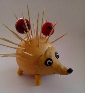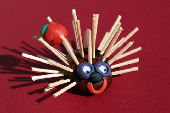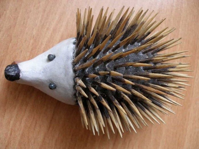 - Забийте клечка за зъби в торса на таралежа. От вас зависи колко дебели да бъдат иглите.