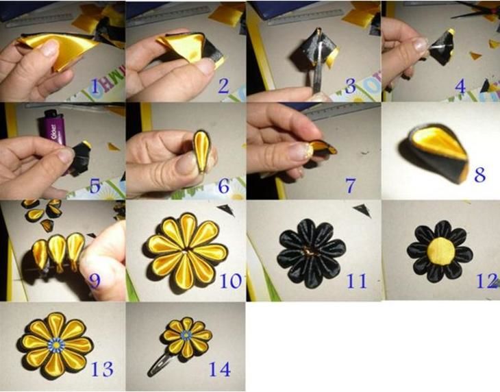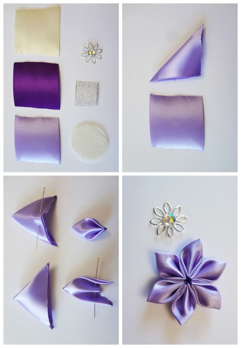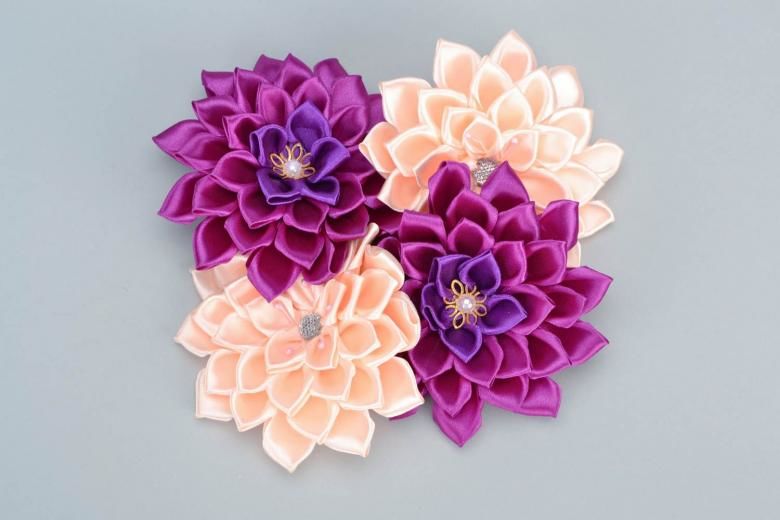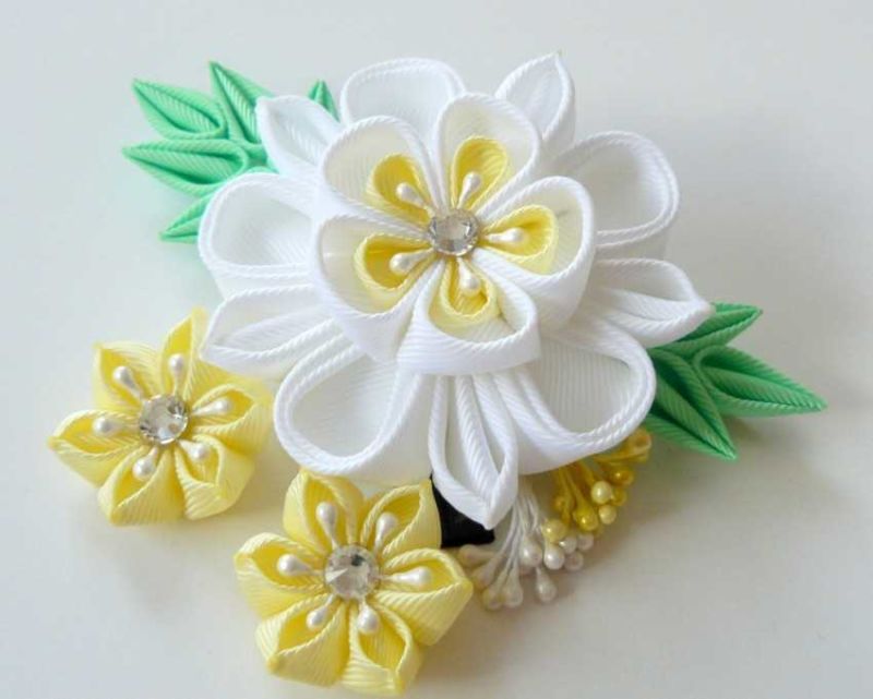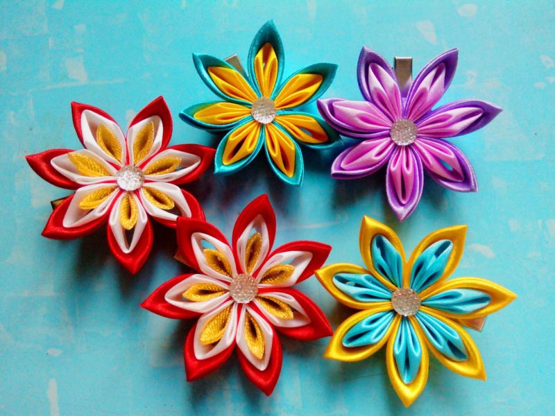 Kanzashi Приложения със собствените ви ръце: основни техники, майсторски класове и схеми стъпка по стъпка със снимки