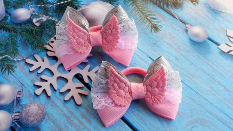- Фиба с шифонена пеперуда върху панделка, изработена от блестящ фомир с добавка от въдица с мъниста, ще изглежда оригинално;